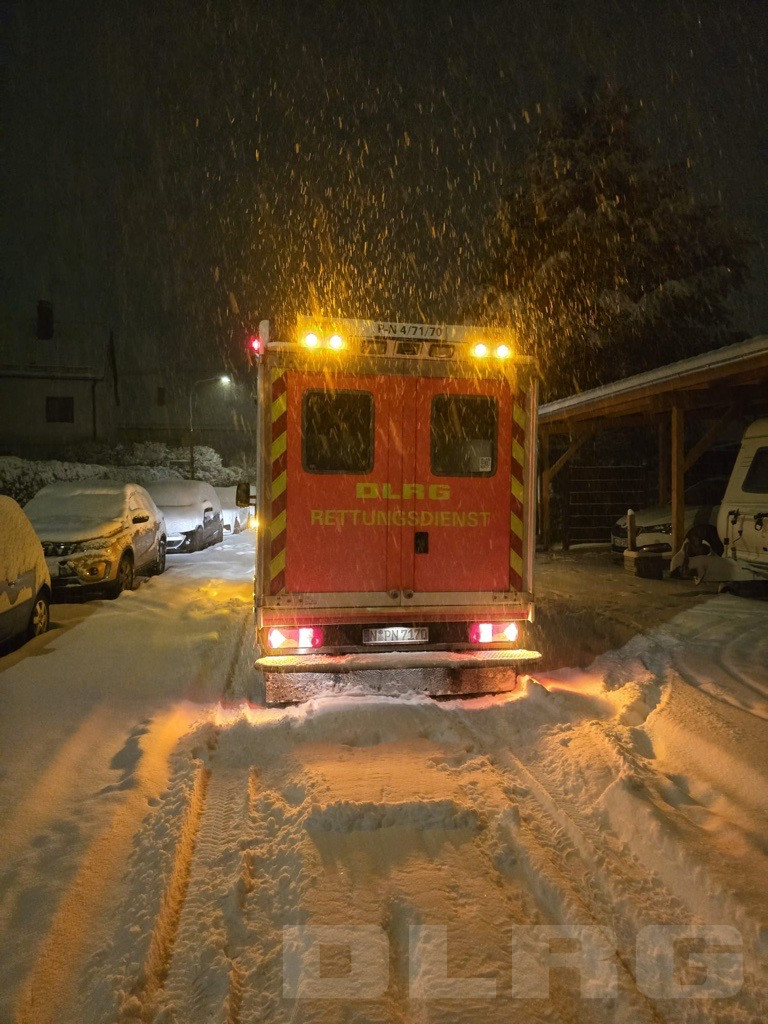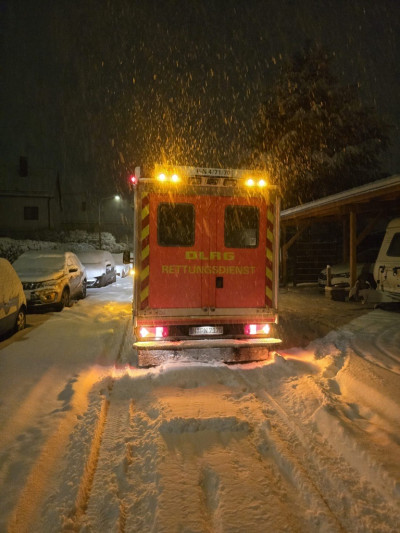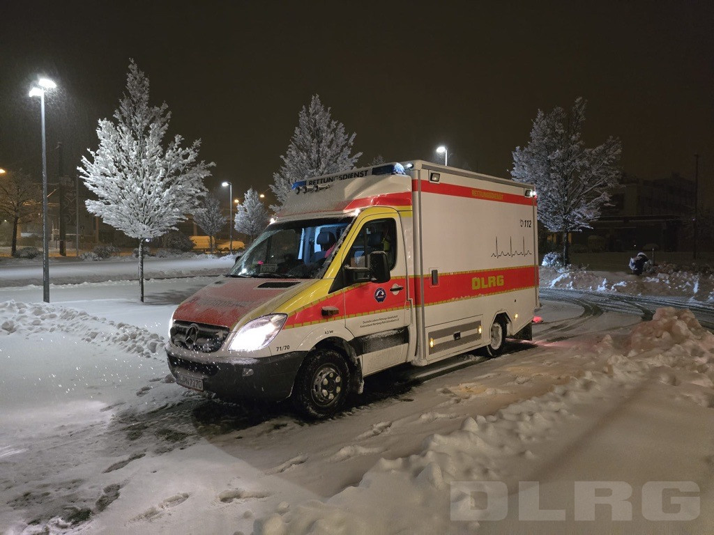 Die starken Schneefälle der vergangenen 1,5 Tage und Nächte haben die Arbeitsbedingungen aller Einsatzkräfte erheblich erschwert. Hier ist es selbstverständlich für uns als DLRG, mit unserem ehrenamtlich besetzten Rettungswagen Patienten und Kollegen zu unterstützen!