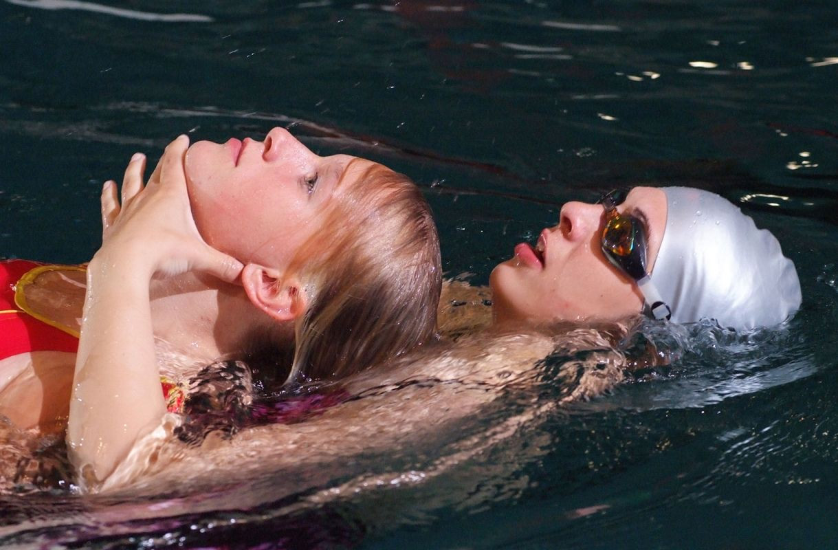 - 50 m Schleppen in höchstens 4 Minuten, beide Partner in Kleidung, je eine Hälfte der Strecke mit Kopf- oder Achsel- und einem Fesselschleppgriff (Standard-Fesselschleppgriff oder Seemannsgriff)