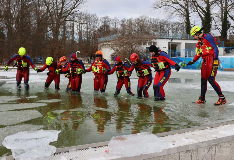 Innerhalb von nur einer Woche berichtete die BR-Frankenschau gleich zweimal über Gefahren am und auf dem Eis sowie die Eisrettungsübung der DLRG Nürnberg