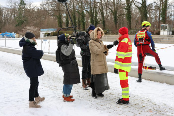 Kurzfristig stellten sich am 30.12.2025 mehrer DLRG'ler dem Bayerischen Rundfunk für ein Fernsehinterview über Gefahren am und auf dem Eis zur Verfügung, das am gleichen Abend in der Frankenschau gesendet wurde: